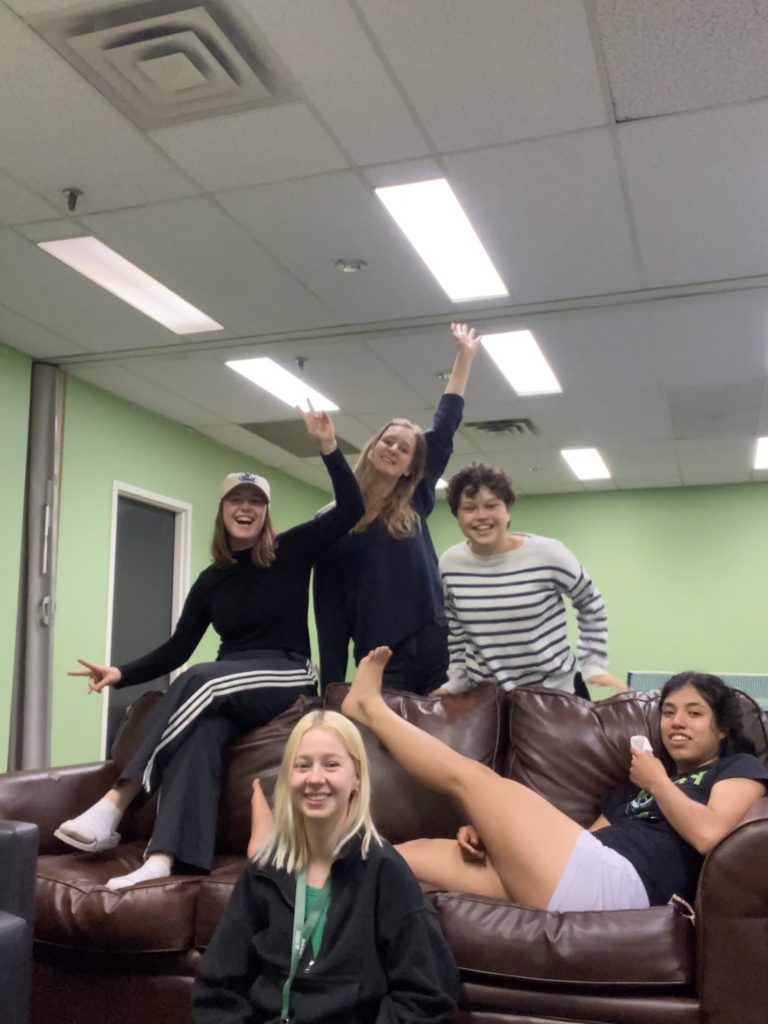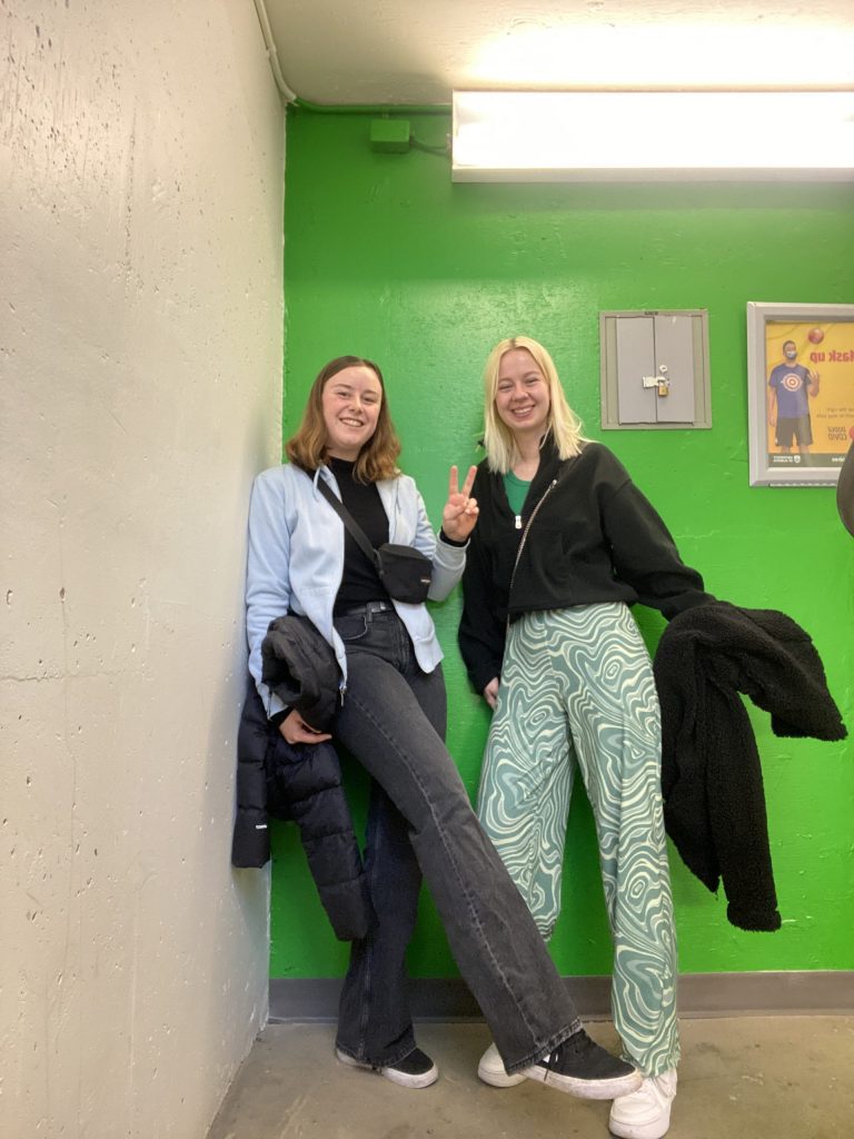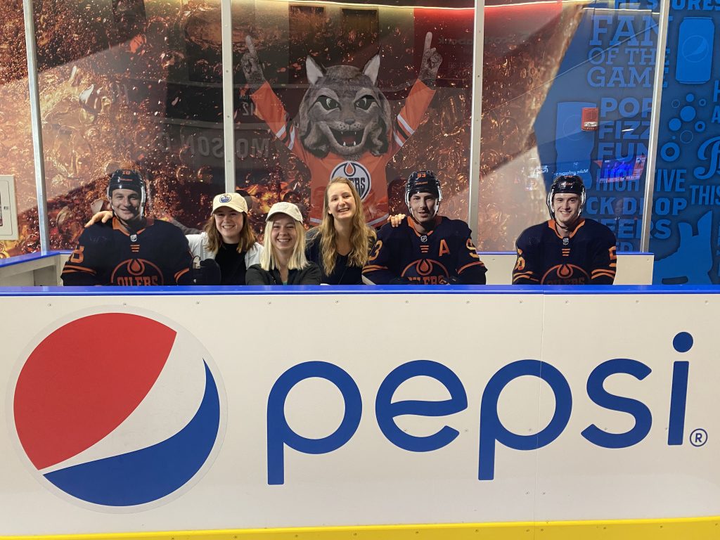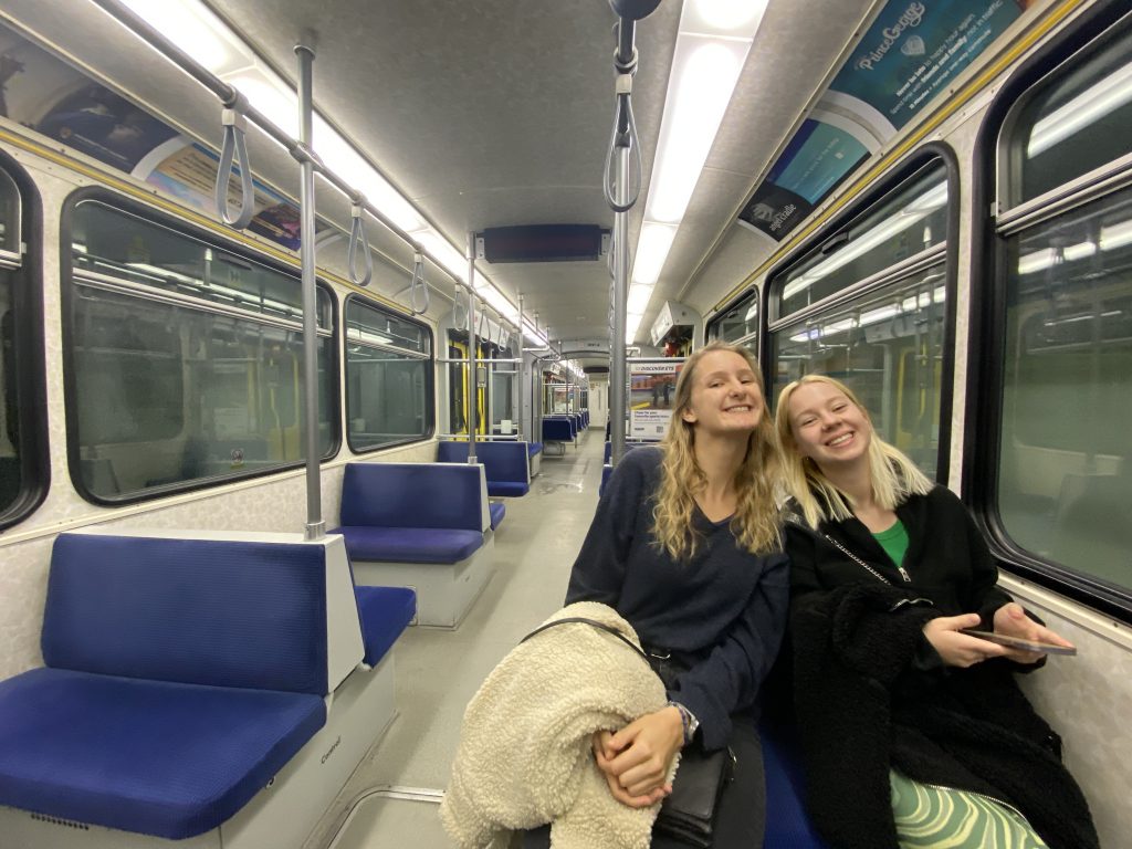 Das große Event stand uns nämlich noch bevor: Ein Spiel von den Edmonton Oilers. Das Eishockey Team von Edmonton, welches in der NHL spielt. Die Aufregung war groß, wie man auf diesem schönen Bild von Sophia und Jasmin in der LRT sieht.